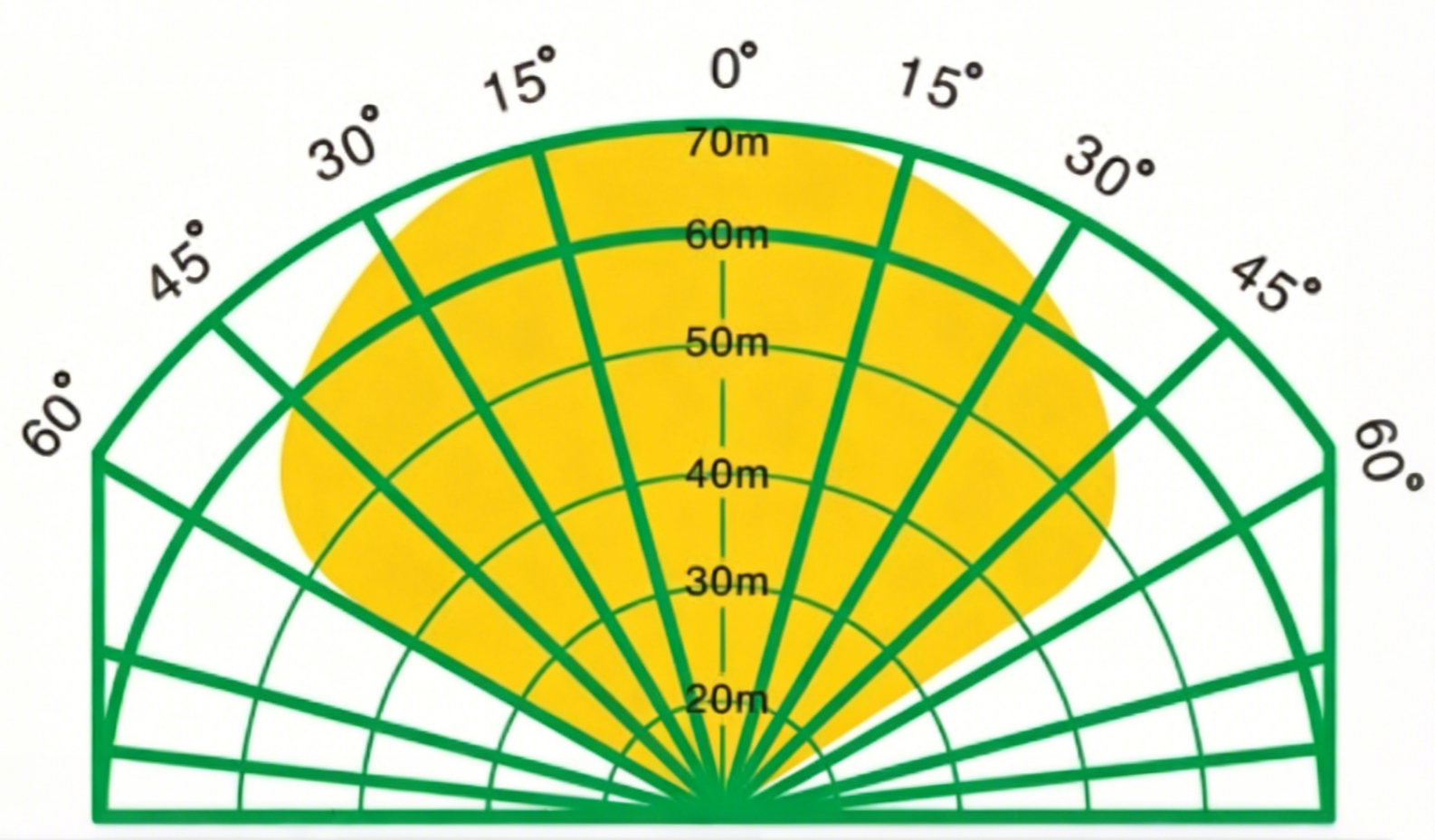 火焰探測(cè)器的探測(cè)范圍不是燈泡式的360°均勻覆蓋,而是一個(gè)錐形視野。想象一下手電筒——光柱照出去,越遠(yuǎn)范圍越大,中間最亮,邊緣變?nèi)?。火焰探測(cè)器就是這個(gè)原理: