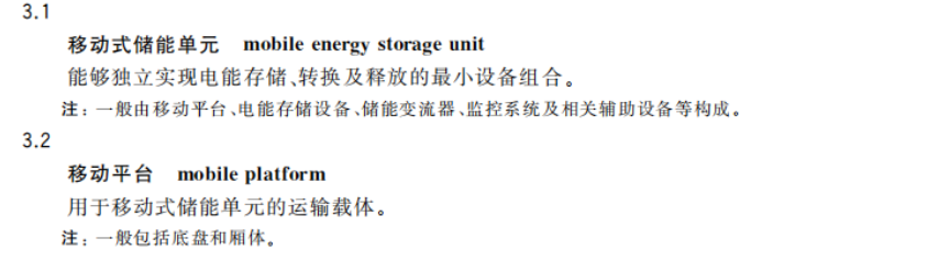 ?。?)《移動式儲能電站通用規(guī)范》GB/T 42715-2023第3.1條、3.2條:移動式儲能電站一般由移動平臺、電能儲存設備、儲能變流器、監(jiān)控系統(tǒng)及輔助設備組成。其中移動平臺一般包括底盤和廂體。